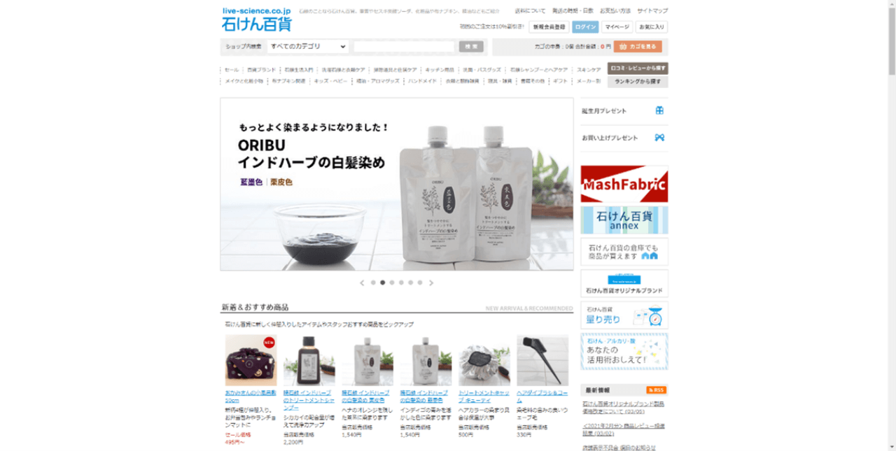 国内外の優れた石けんや布ナプキン、化粧品、精油などを販売しているECサイトです。取り扱い商品に関連する情報を詳細に紹介する姉妹サイトも運営しているのが特徴です。同社の商品のことをよく知らない潜在顧客に姉妹サイトで興味を持ってもらうことで、商品購入に向けた導線を作り出しています。