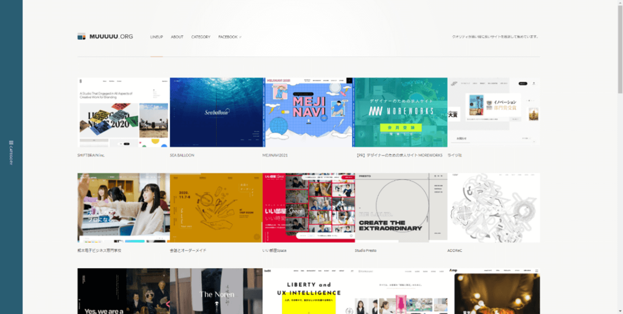 デザイン性の高いECサイトが非常に多く収録されているギャラリーサイトです。MUUUUU.ORGと同様に、業種別や使用しているWEBデザインのタイプ別、色別などでECサイトを探すことができます。