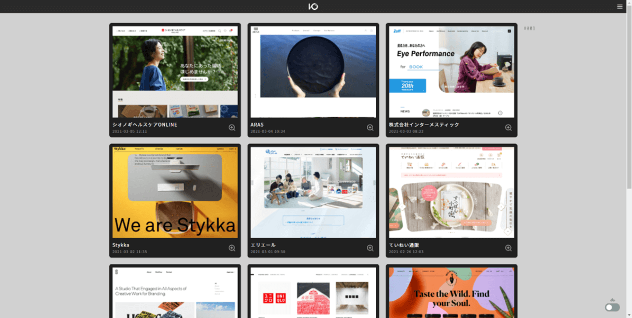 国内のECサイトはもちろん、海外のECサイトも多数収録されているギャラリーサイトがI/O 3000です。海外サイトも多数扱っているので、「世界のWEBデザインの流れを知っておきたい」「ワールドワイドに流行しているECサイトを知りたい」「グローバルに通用するECサイトのデザインをしたい」などと考えている人にはおすすめです。