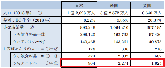 実は、日本ではファッション・アパレル業界における人口あたりの店舗が、アメリカやイギリスと比較して高い傾向にあります。