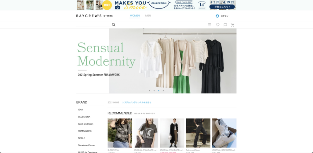 ベイクルーズはグループ会社で、主にファッション・アパレル業と飲食業を中心に展開している企業です。ファッションブランドは、レディース・メンズどちらも揃えており、JORNAL STANDARDやDeuxieme Classe、Spick & Spanなど、少し単価が高めのブランドを多く取り扱っています。