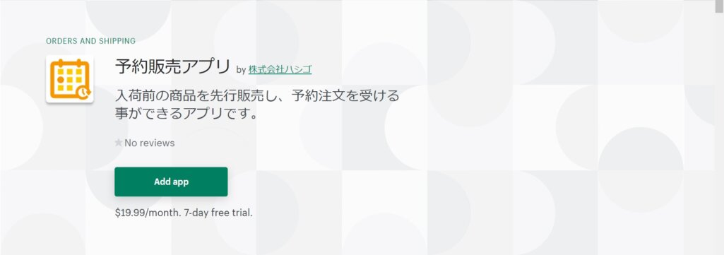 予約販売アプリは株式会社ハシゴが提供する日本のアプリで、管理画面から設定することでショップに登録している商品を簡単に予約商品として販売できるようになります。