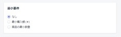 最小要件を設定する場合には、画像のような選択欄が出るため画面の指示に従って入力を進めます。客単価のアップに効果的です。