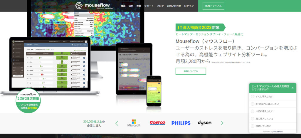 サポート体制が充実しているかどうかも、忘れずにチェックしておきたいポイントです。ヒートマップツールは、ユーザーの動きを把握するだけでなく、その後の分析が重要です。そのため、分析自体に慣れていないときは、海外製のツールではなく、日本語に対応した説明や問い合わせができるツールを選ぶと良いでしょう。