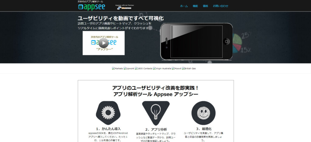 Appseeは、ユーザビリティを動画で確認できるISOモバイルの解析アプリです。アプリを利用したユーザーの行動をビデオで録画する仕組みは、ユーザーアクションの理解やUI改善に効果があります。結果だけでなくユーザーの動きが見えるため、何を見て何に関心を持つのか、ひと目で把握しやすくなるでしょう。