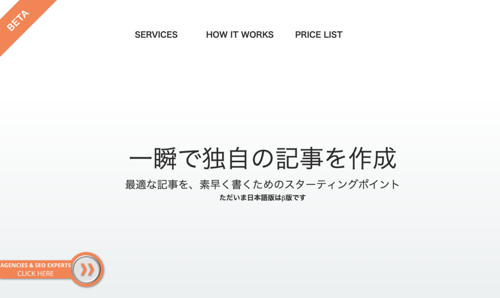 シンプルな操作で簡単にSEOに強い記事が作成できて、引用元のリンクの付与、キーワード提案機能、より上位獲得のためのアドバイスをしてくれる機能まであり、日本語以外の言語での記事作成も可能です。