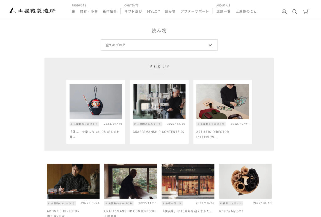 コンテンツは、ものづくりへのこだわりや愛用者のインタビューなど、土屋鞄製造所のプロダクトストーリーや、質の高さを感じられるものになっています。