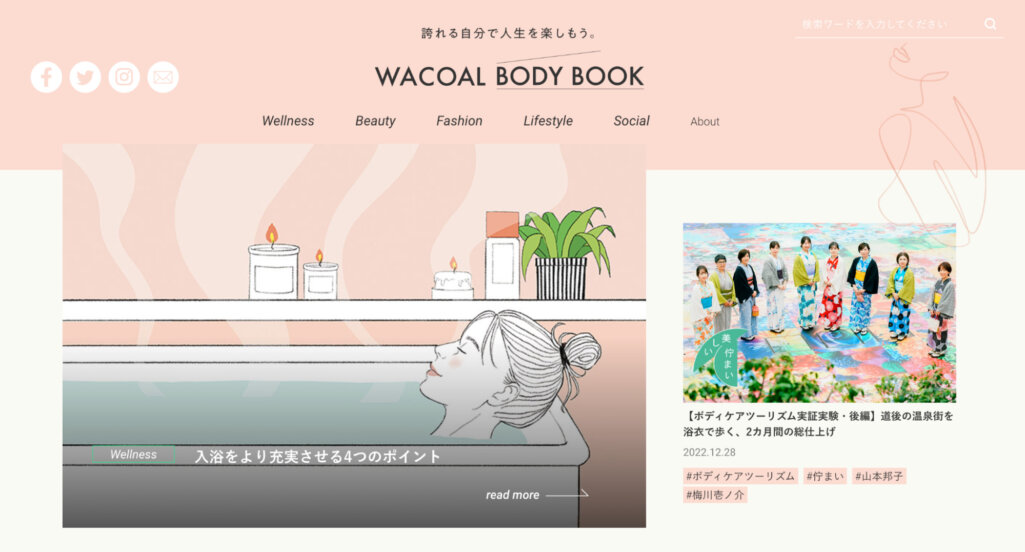 女性用下着に関する情報発信だけではなく、健康やライフスタイル、美容など毎日を心地よく送るためのヒントを提供する情報メディアになっています。