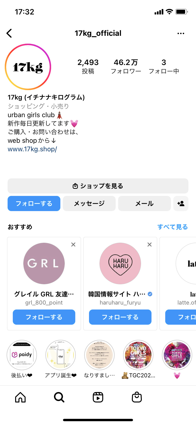 17kg(イチナナキログラム)とは10代・20代女性向けのアパレル系ECサイトです。韓国ファッションを中心に安くて可愛い、いわゆるプチプラアイテムを取り扱っています。17kgはInstagramを軸にした運営を行っています。起業前にInstagramの効率的な運用について徹底的に研究しました。大きな成果を出している大きな要因です。