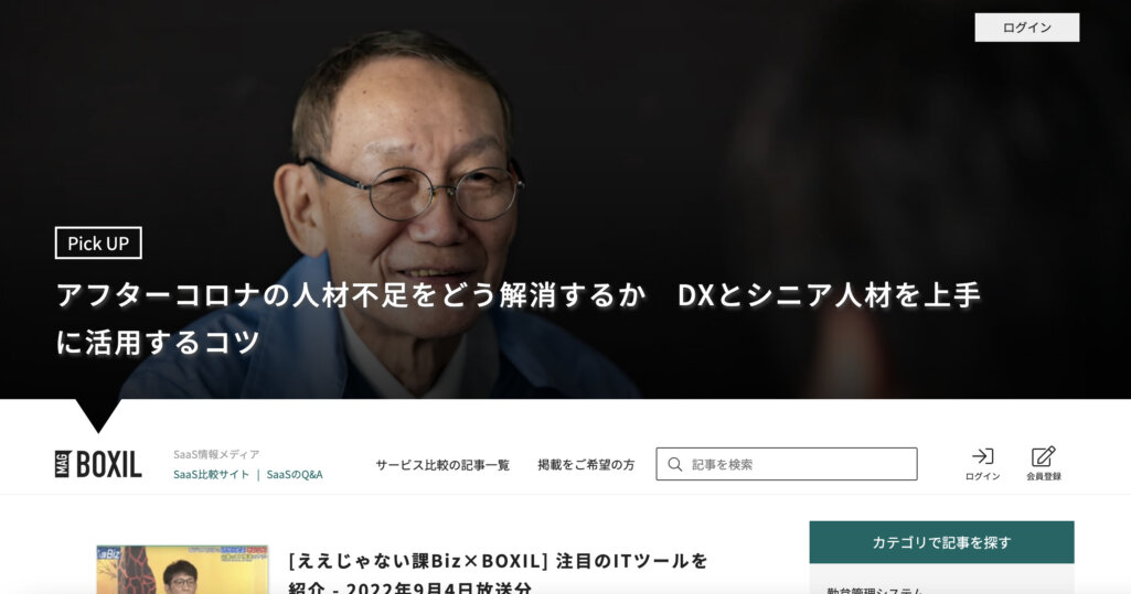 「ボクシルマガジン」は、法人向けITサービスやSaaS情報の比較検討サイト「BOXIL(ボクシル)」が運営するオウンドメディアです。同メディアはBOXILの資料請求数を高めて、リード獲得を目指すために開設されました。
