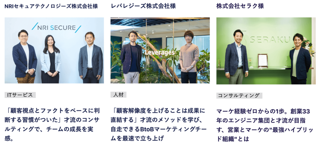 弥生シリーズ・ベネッセコーポレーション・ビズリーチなど大手企業における成功事例も豊富です。自社の課題を見える化して効果的な施策を行いたい人はぜひチェックしてください。