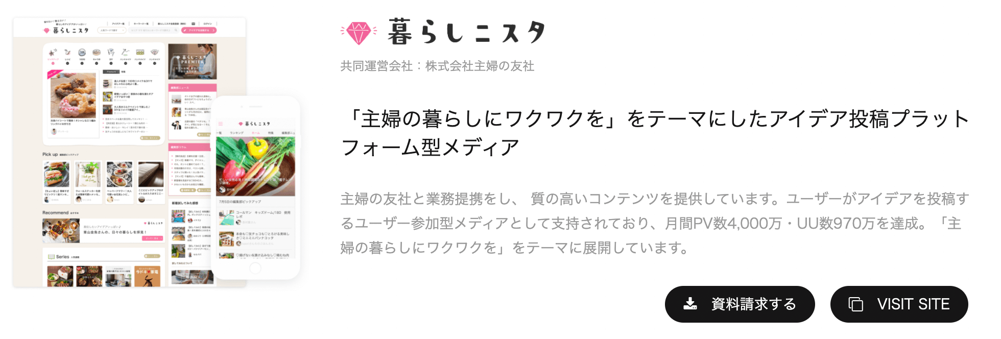 それでは具体的なコンテンツマーケティング会社の紹介に入っていきます。最初に紹介するのは、自社メディアが強いコンテンツマーケティング会社です。自社もメディアを運営しており高い実績を有するため、豊富な経験やノウハウを持ちます。