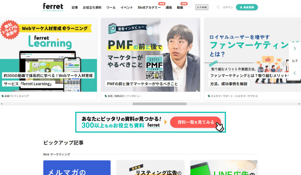 ferretには「マーケターのよりどころ」というコンセプトがあります。サイト内では、マーケターの悩みを解決するようなコンテンツが多いです。そのため「困ったときは、まずferretで探してみる」という使い方ができます。