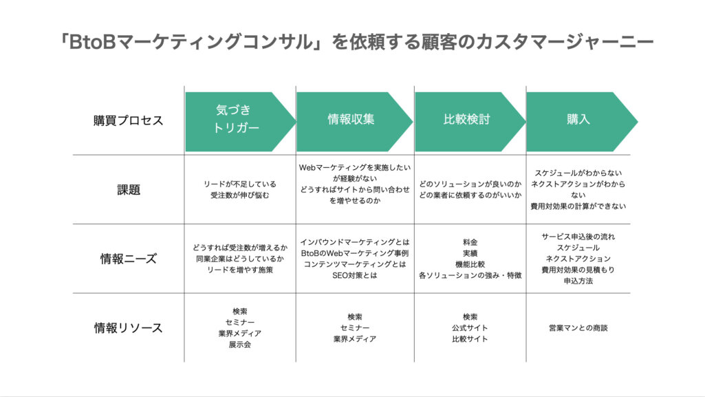 BtoBのカスタマージャーニーマップのポイント、顧客課題やペルソナ