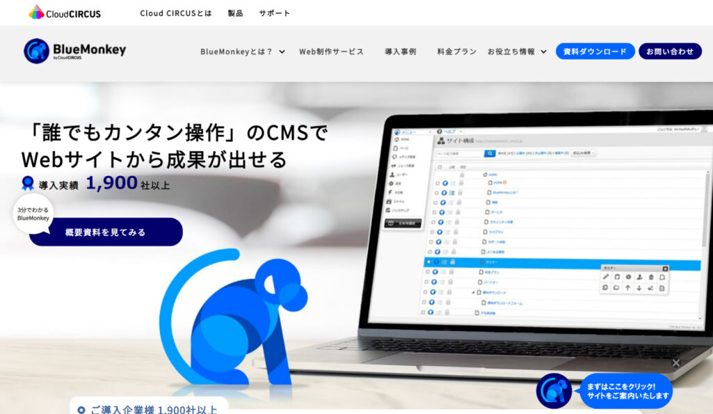 CMS BlueMonkey Knowusはクラウドサーカス株式会社が提供しているCMSサービスです。