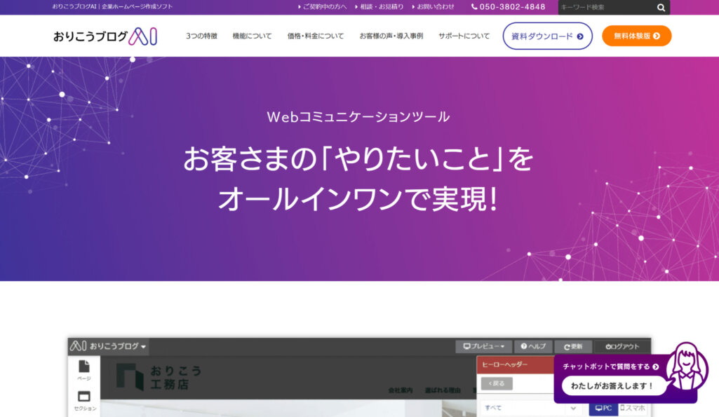 他にもメール配信したり、問い合わせフォームを設置したりと企業のニーズやサービスの特色を反映させたサイトにできます。
