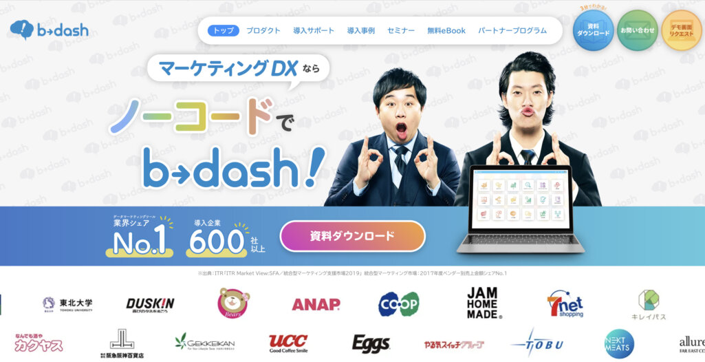 b→dash(ビーダッシュ) は、株式会社データXが提供するMAツールです。ビッグデータ解析とAIを軸に事業を展開しています。