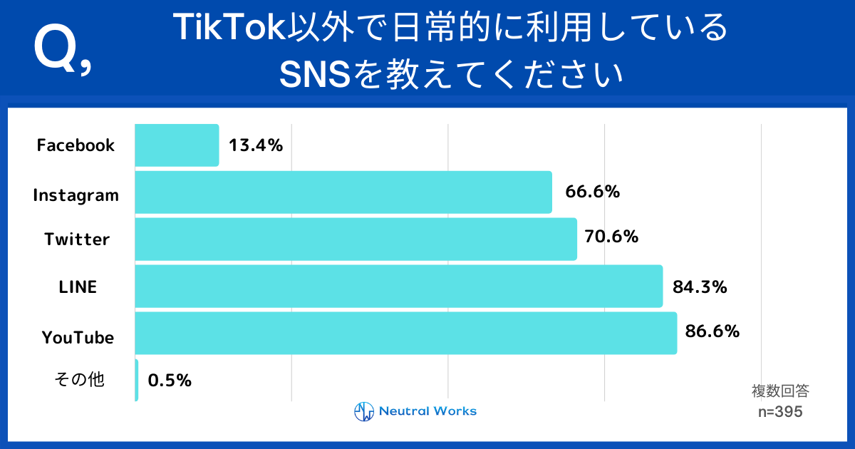Q.TikTok以外で日常的に利用しているSNSを教えてください。