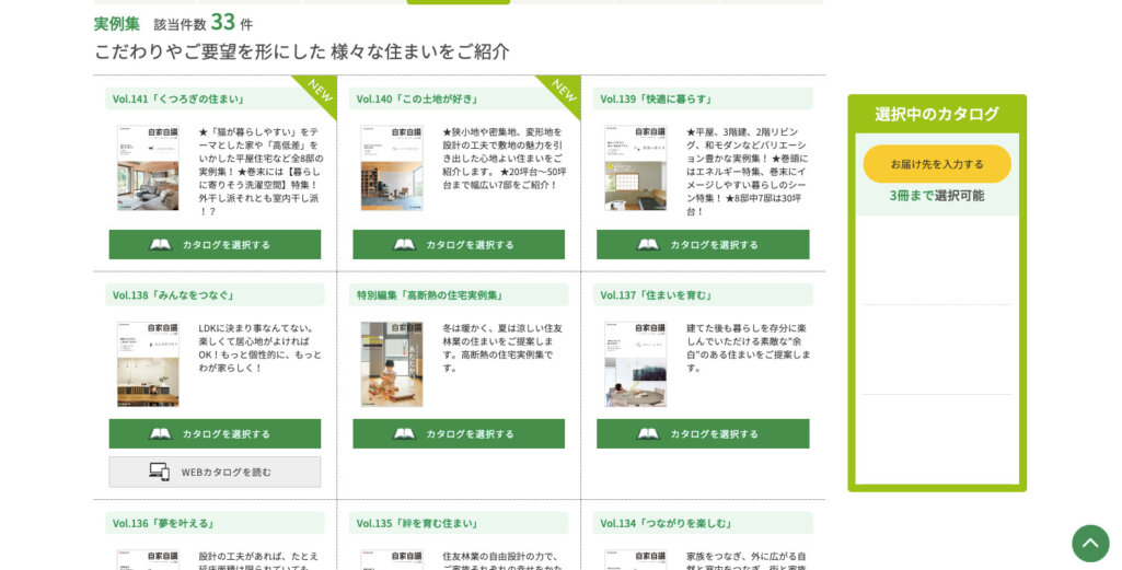 住友林業は住宅・不動産事業などを中心に展開する企業で、自由設計の住居を提案しています。住友林業のホームページでは「くつろぎの住まい」「この土地が好き」「快適に暮らす」といったそれぞれのテーマに合わせた住まいのカタログを掲載しています。購入したい住宅のイメージがあるユーザーに向けて展開している、導入・購入事例系ホワイトペーパーです。