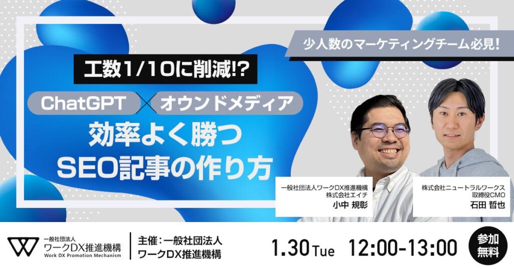 デジタルマーケティング支援事業を展開する株式会社ニュートラルワークス(神奈川県茅ヶ崎市 代表取締役:三木五月、以下 ニュートラルワークス)は、株式会社アクシス(本社: 岐阜県岐阜市、代表取締役 臼井教司、以下 アクシス)と共催セミナーを実施いたします。