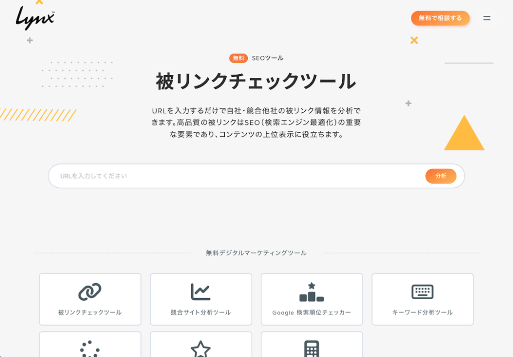| Lynx「被リンクチェックツール」 | https://www.lynx-co.jp/backlink-checker/ |