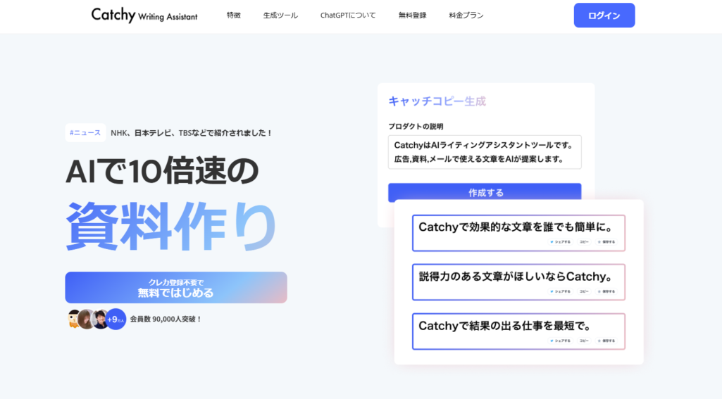 引用:Catchy(キャッチー) – 国内最大級のAIライティングアシスタントツール
