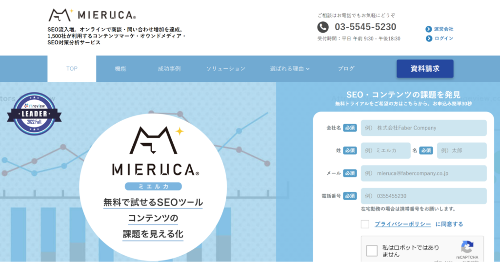 Mierucaは、株式会社FaberCompanyが開発した、デジタルマーケティングの総合的な支援を目的としたツールです。SEOとデジタルマーケティングに強いツールで、搭載されている主な機能では以下の4つが使用出来ます。