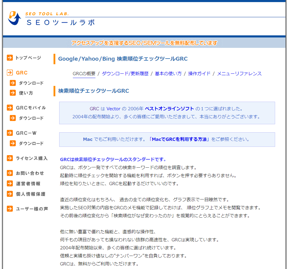 GRCは、検索順位を定期的にモニタリングするための専門ツールです。特定のキーワードでの検索順位を自動的にチェックし、その変動を追跡することができます。