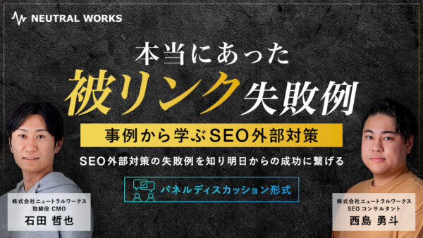株式会社ニュートラルワークス 取締役CMO。1984年生まれ。高校卒業後にISD株式会社を起業、SEOの黎明期の2003年から独学でSEOを学び自社事業を軌道に乗せる。2009年よりSEO以外のSEM全般の知見をつけるため、株式会社オプトにてナショナルクライアントのリスティング広告運用に従事。株式会社メタップスの立ち上げや複数のベンチャー企業にて事業立ち上げを経験。前職はワンダープラネット株式会社でゲームプロデューサーとしてスマホゲームアプリの制作に従事。2018年にニュートラルワークスに入社。SEO/Web広告運用/サイト分析・改善など、Webサイトの運用改善~ゲームアプリ制作や数十万フォロワーのSNSアカウントの運用経験などWebビジネス全般を守備範囲とする。
