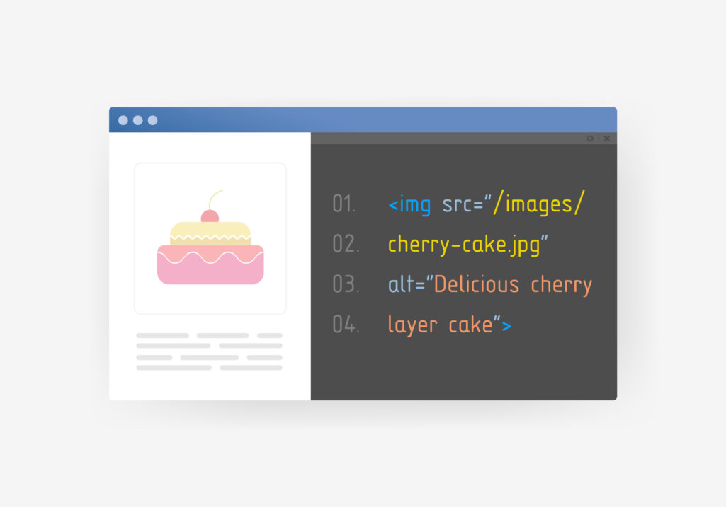 具体的な対策方法としては、alt属性には画像の内容を正確に伝えるための2~3個の関連キーワードを含め、簡潔に記述するようにしましょう。以下のように記述します。