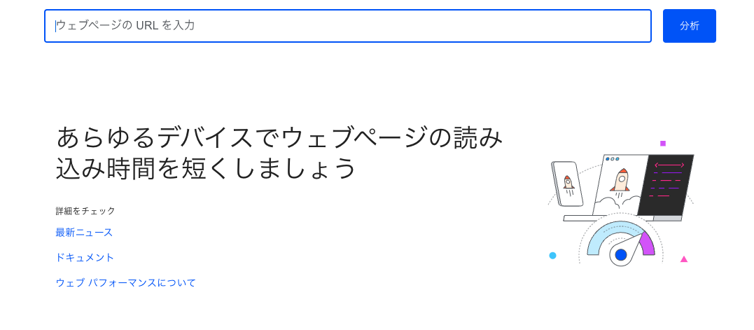 Googleが提供するPageSpeed Insightsは、ページの表示速度を測定し、改善提案を行うツールです。