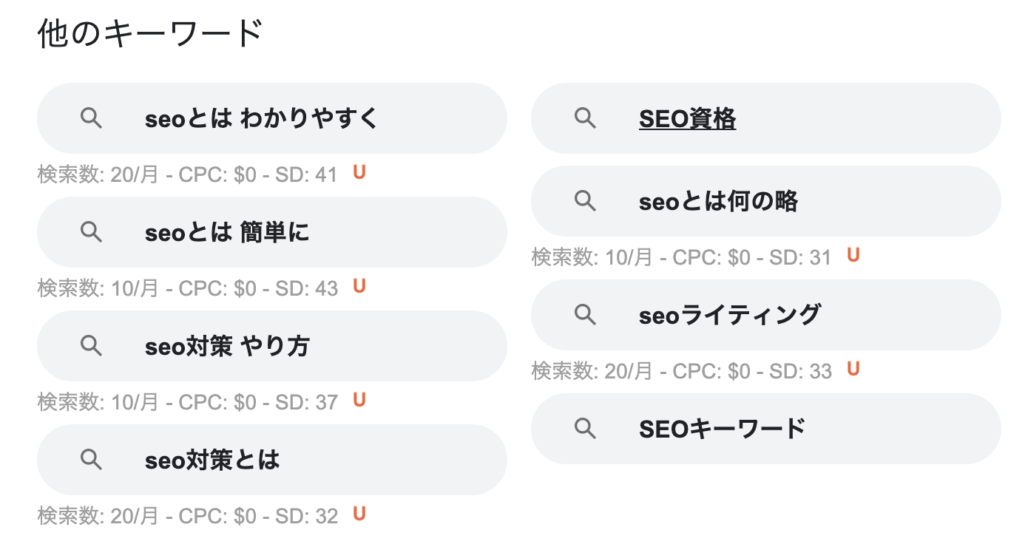 • サジェストキーワード