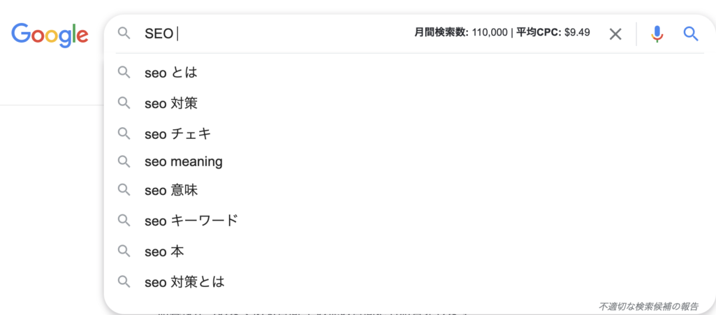 サジェストキーワードは、検索窓に入力したキーワードと併せて検索されやすいキーワードのことです。