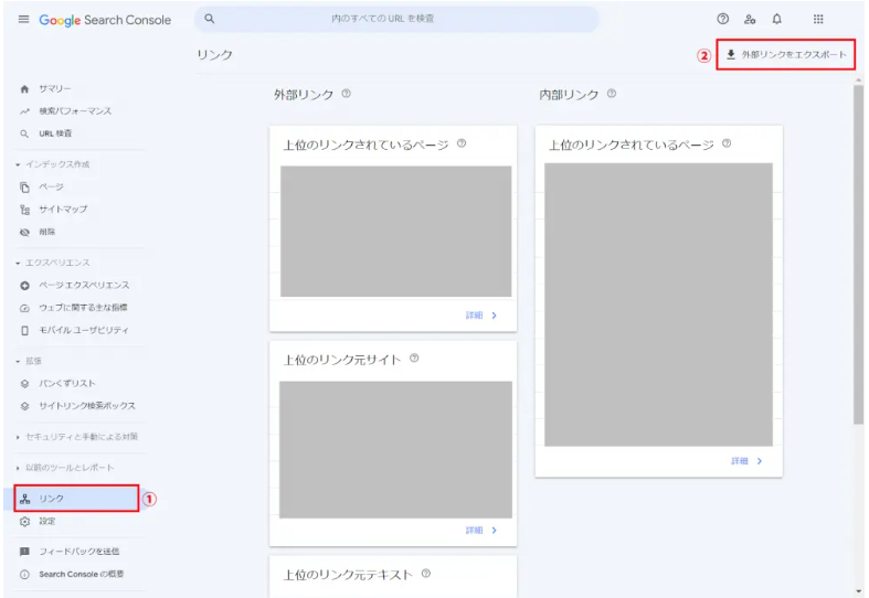 3.「外部リンクをリンクエクスポート」ボタンをクリックして、被リンクの一覧をCSVファイルとしてダウンロードします。