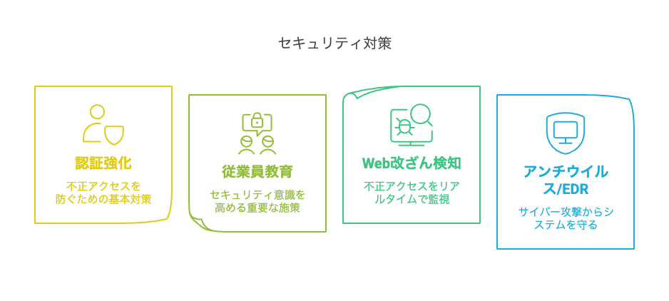 企業はWeb改ざん検知ツールの導入、多要素認証の活用、従業員教育の強化など高度な対策を講じましょう。
