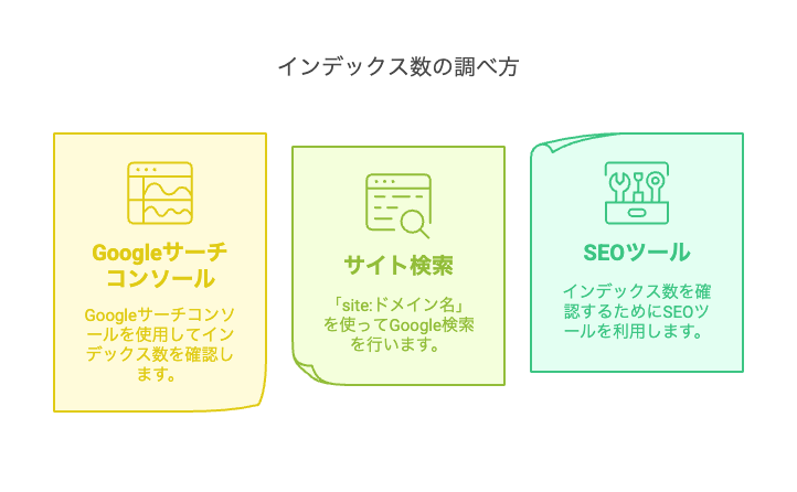 インデックス数を調べる方法はいくつかあります。ここからは、以下の方法についてそれぞれ解説します。