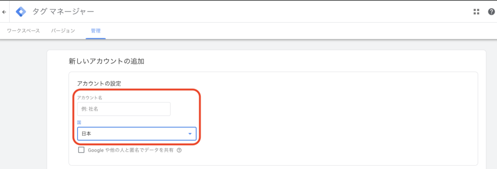 2.アカウントを作成する(GTMのアカウントがある場合はスキップ)