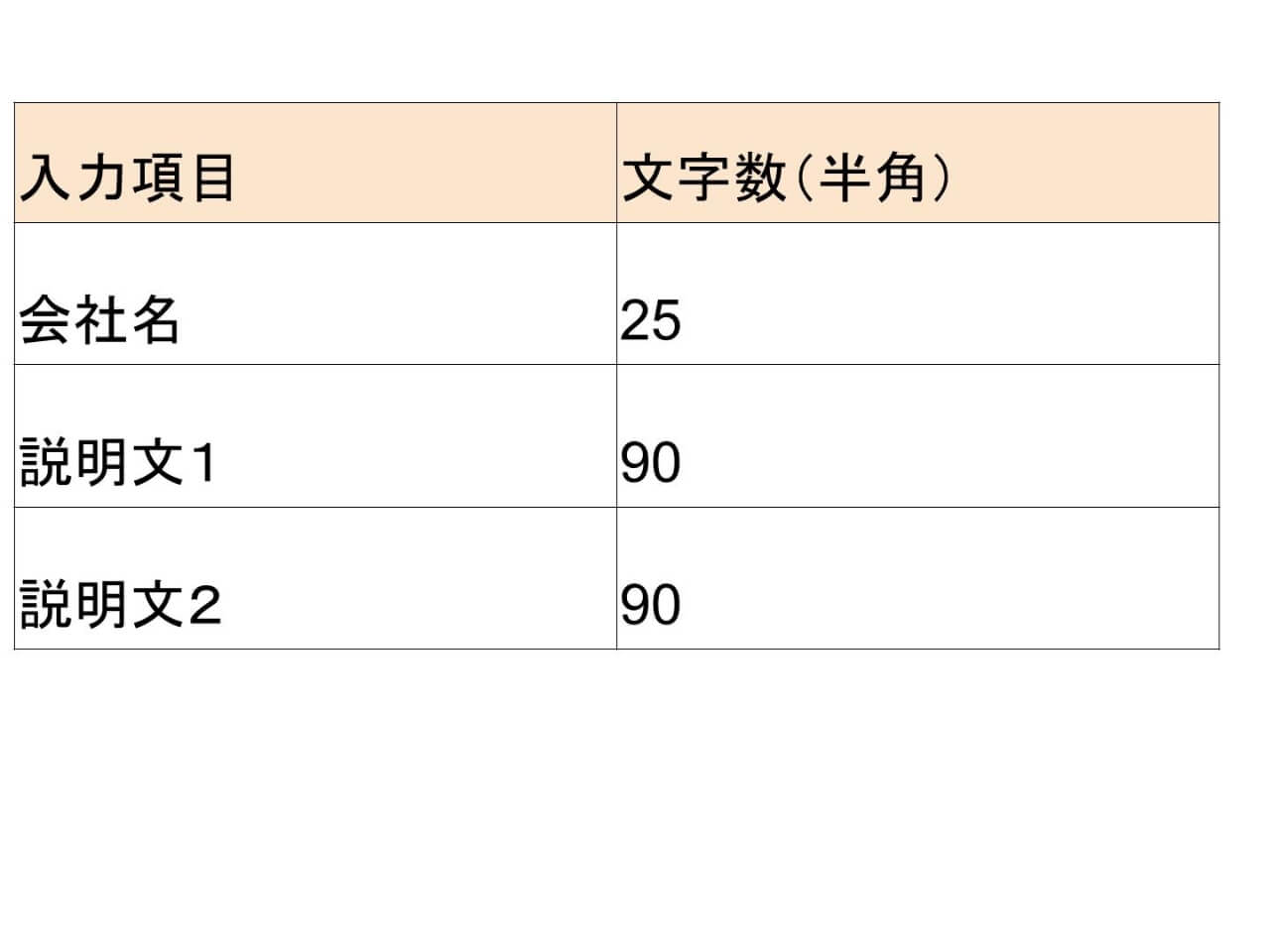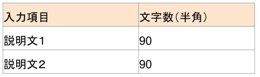 見出し(3つまで)は30文字以内、説明文(2つまで)は90文字以内、パス/ディレクトリ(2つ)は15文字以内です。
