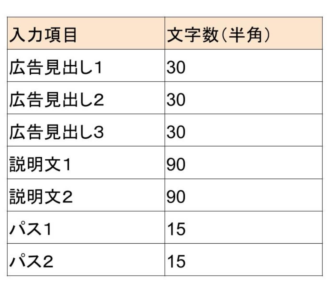 テキスト広告では、見出しは各半角30文字(全角15文字)、説明文は各半角90文字(全角45文字)、パスは各半角15文字(全角7文字)入力が可能です。