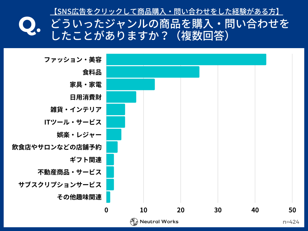 また、ニュートラルワークスが独自で実施した「SNS広告に関するユーザー意識調査」の結果からも、SNS広告からコンバージョンが発生しやすい商材について明らかになりました。