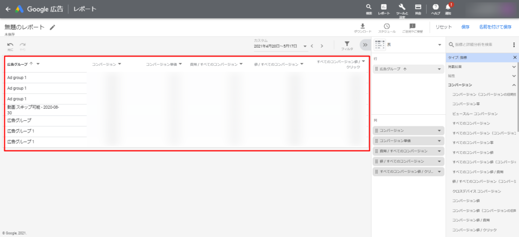 キャンペーン・広告グループ別レポート