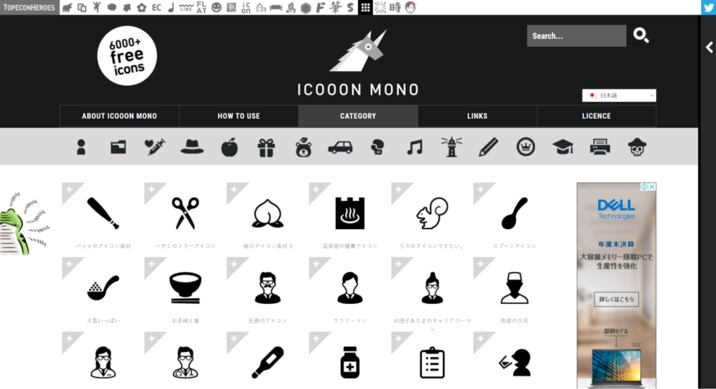 ICOOON MONOは6,000点以上のアイコンを配布しているサイトです。