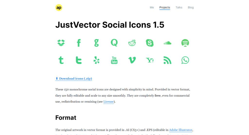 JustVector Social Icons 1.5は、150種類のアイコンがまとめてダウンロードできる素材サイトです。