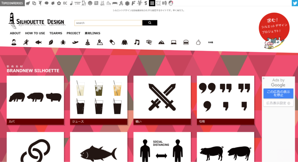 SILHOUETTE DESIGNはさまざまなテイストのアイコンをそろえた素材サイトです。