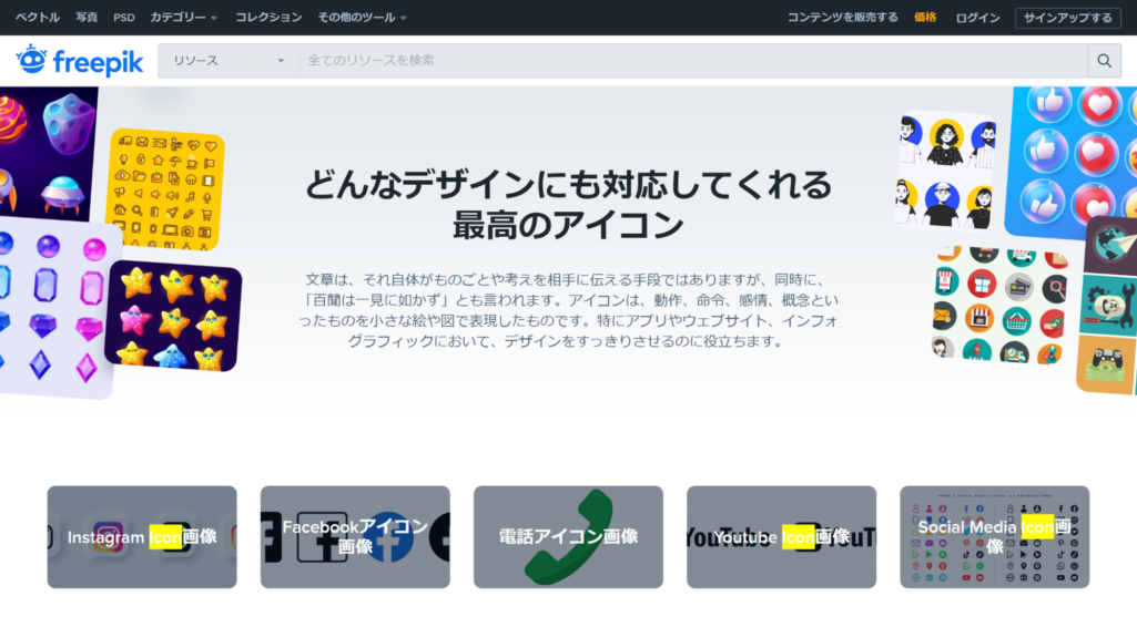 flaticonはアイコンやステッカーなどの素材を配布しているサイトです。