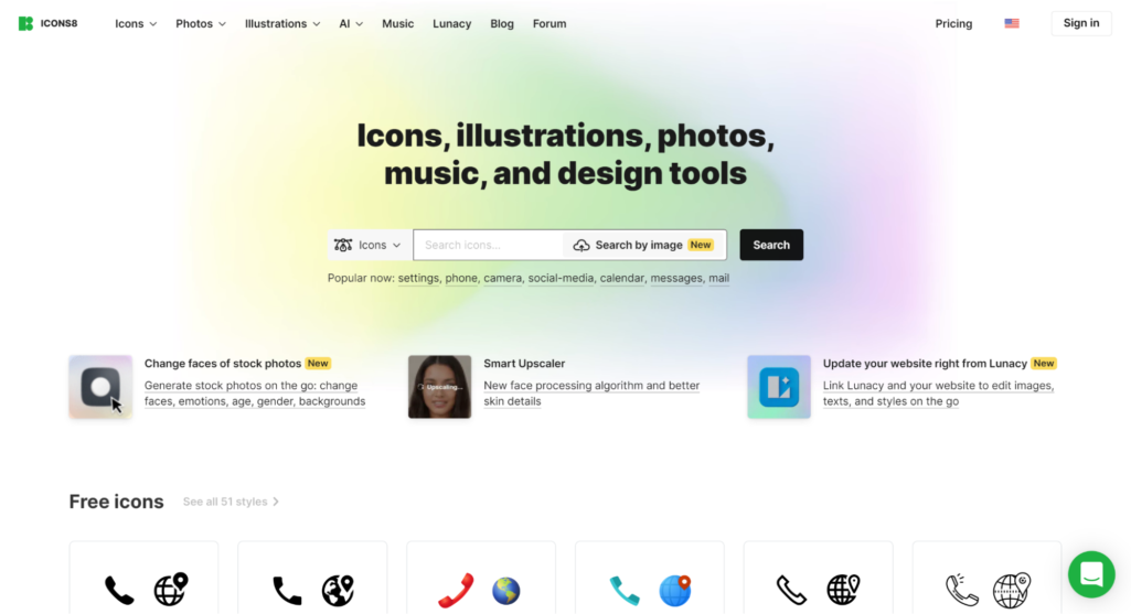 Icons8はアイコンやイラスト、写真、音楽などさまざまな素材を配布しているサイトです。