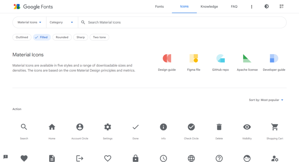Material Iconsは、Google Fontsから展開されているアイコン素材サイトです。