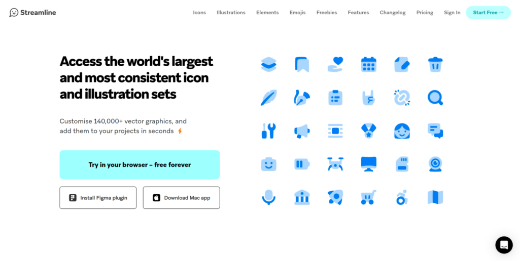 Streamlineはアイコンやイラスト、絵文字などさまざまな素材を提供しているサイトです。