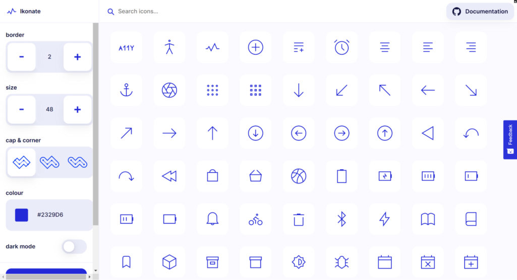 Lineariconsのアイコンは、シンプルかつスタイリッシュなデザインとなっています。またサイト上でサイズも調整できるので、既存のデザインにも簡単に導入できるでしょう。