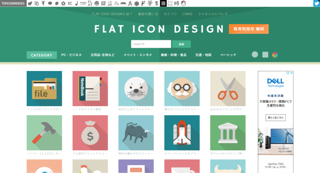 FLAT ICON DESIGNは、フラットなデザインで作られたアイコンがそろっている素材サイトです。